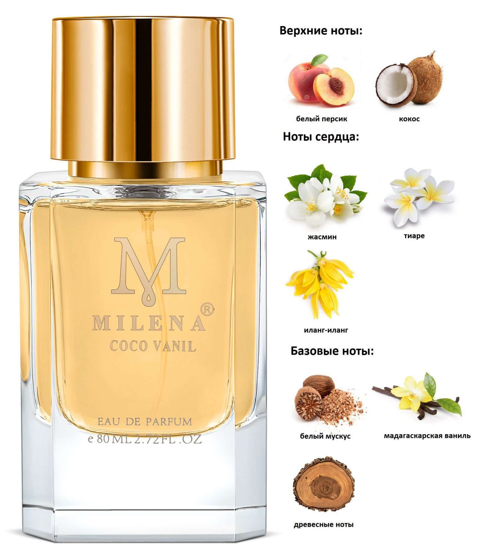 Верхние ноты: белый персик, кокос
