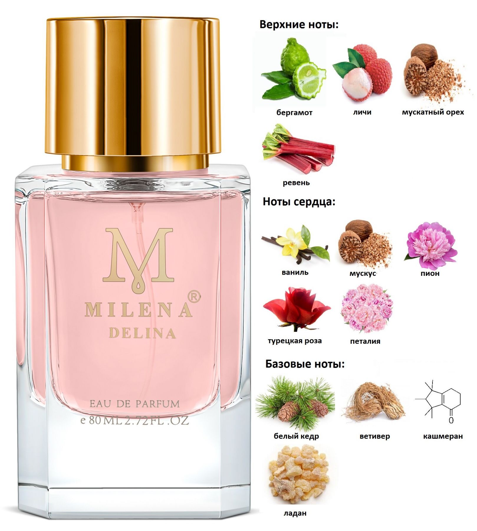 Ноты сердца: ваниль, мускус, петалия, пион, турецкая роза