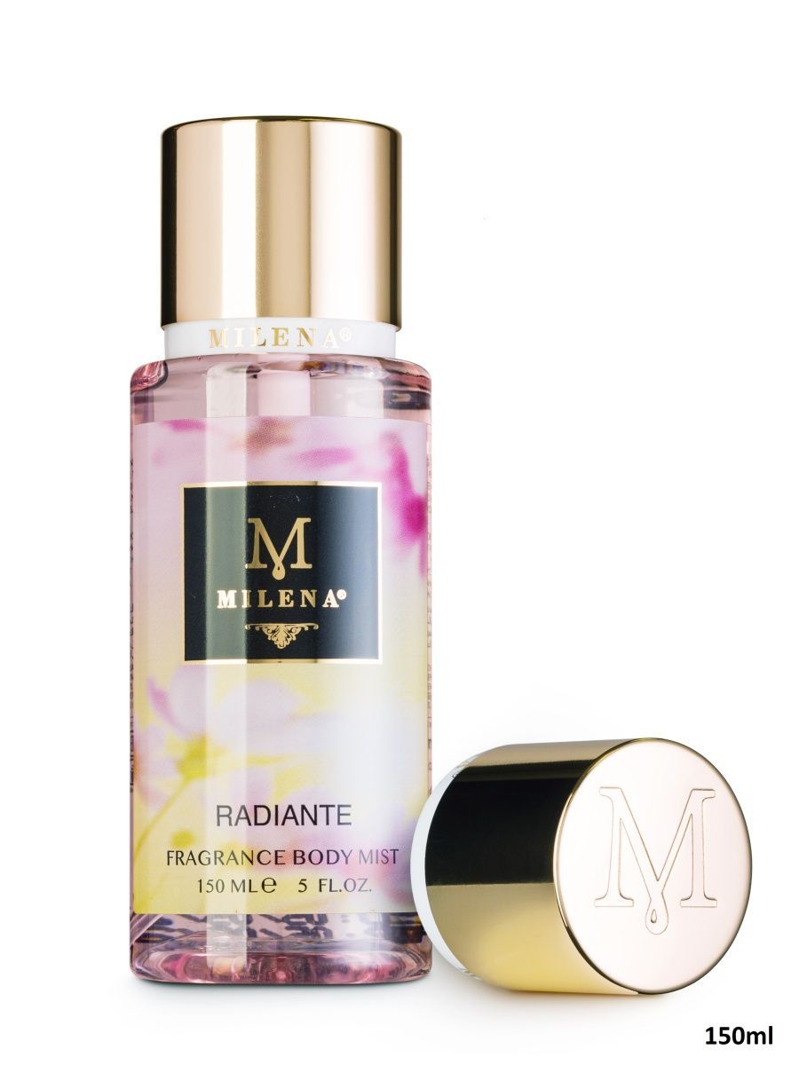 Milena Parfum представляет коллекцию освежающих, увлажняющих и тонизирующих спреев, которые смягчают кожу благодаря содержанию питательных растительных масел и дарят телу легкую ароматную вуаль. Мист для тела Milena «Radiante» подарит невероятное удовольствие любительницам свежих и одновременно сладких фруктово-цветочных композиций. Аромат яркий, но не навязчивый, подойдет для использования как летом, так и зимой. Средство не оставляет следов на одежде, никакой липкости и тяжелого шлейфа. В состав миста входят компоненты, которые бережно ухаживают за кожей, оказывая успокаивающее и смягчающее действие.